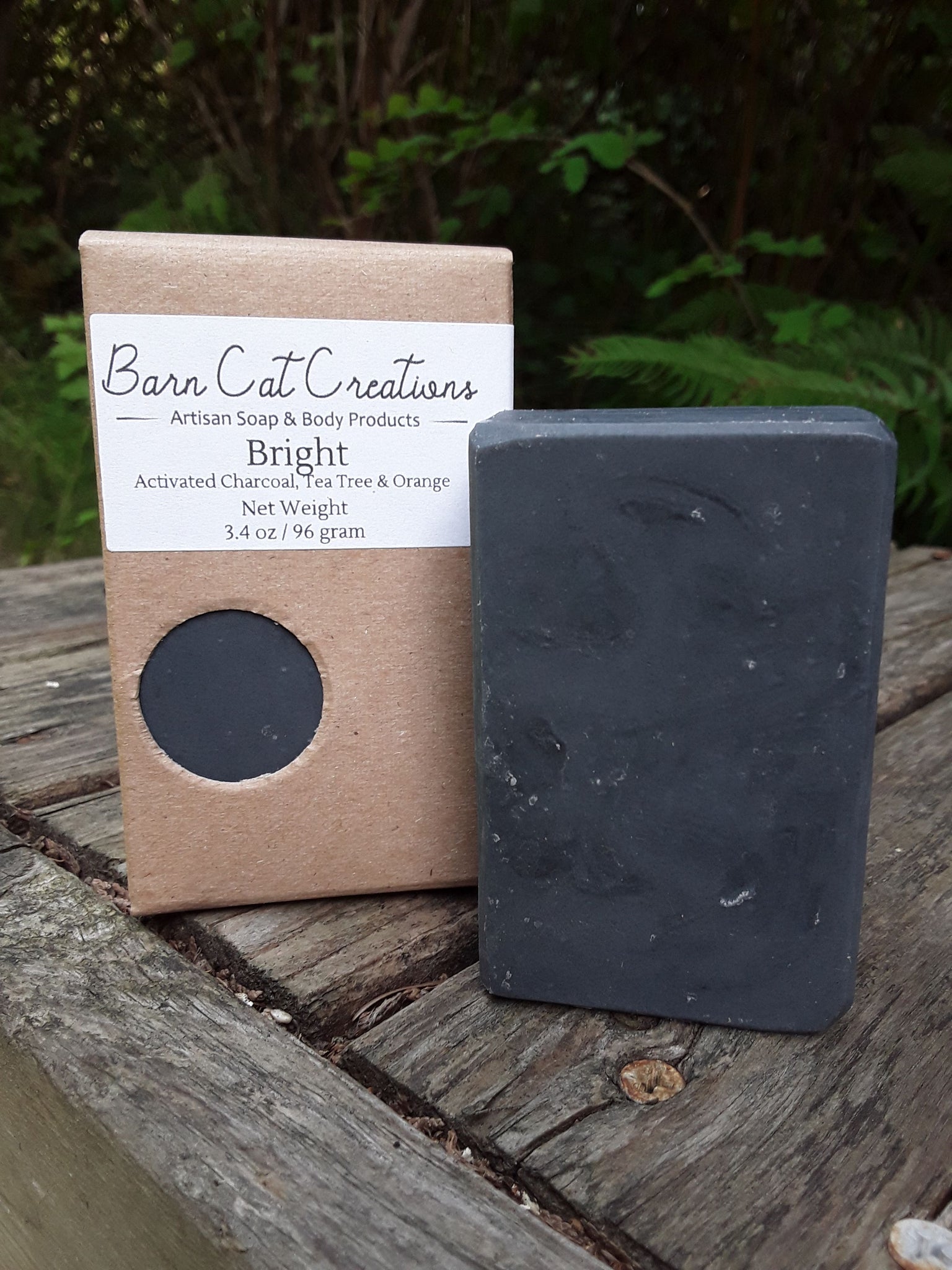 Ingredients include: Olive oil, water, coconut oil, sustainably sourced palm oil, lye (no lye present in the final bar), castor oil, sweet almond oil, orange essential oil, tee tree essential oil and activated charcoal. All of my soaps are extremely skin loving, with a high percentage of olive oil, specifically for its fabulous moisturizing properties!